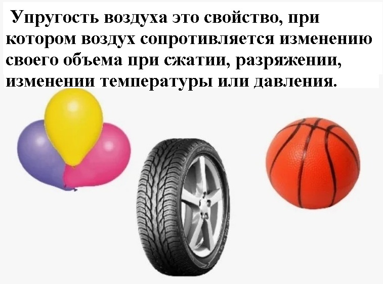 Воздух можно сжать, то есть уменьшить его объем при приложении давления выше атмосферного. Если высокое давление убрать, воздух расширится до первоначального объема, благодаря своей упругости.