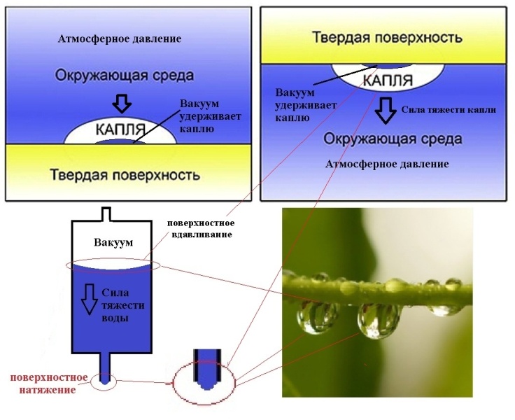 Таким образом поверхностное натяжение воды не сила, но явление, возникающее под действием силы тяжести.