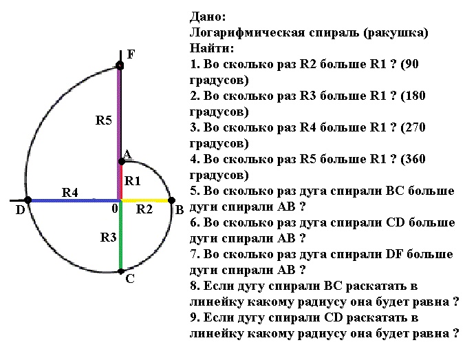 Где +7 главный коэффициент, показывающий во сколько раз увеличивается радиус целого витка золотой спирали, где 1,62 лишь частный случай, коэффициент, показывающий во сколько раз увеличивается радиус спирали на каждые 90 градусов. Следовательно на каждый градус спирали простой раковины ее радиус увеличивается в 1,005 раз.